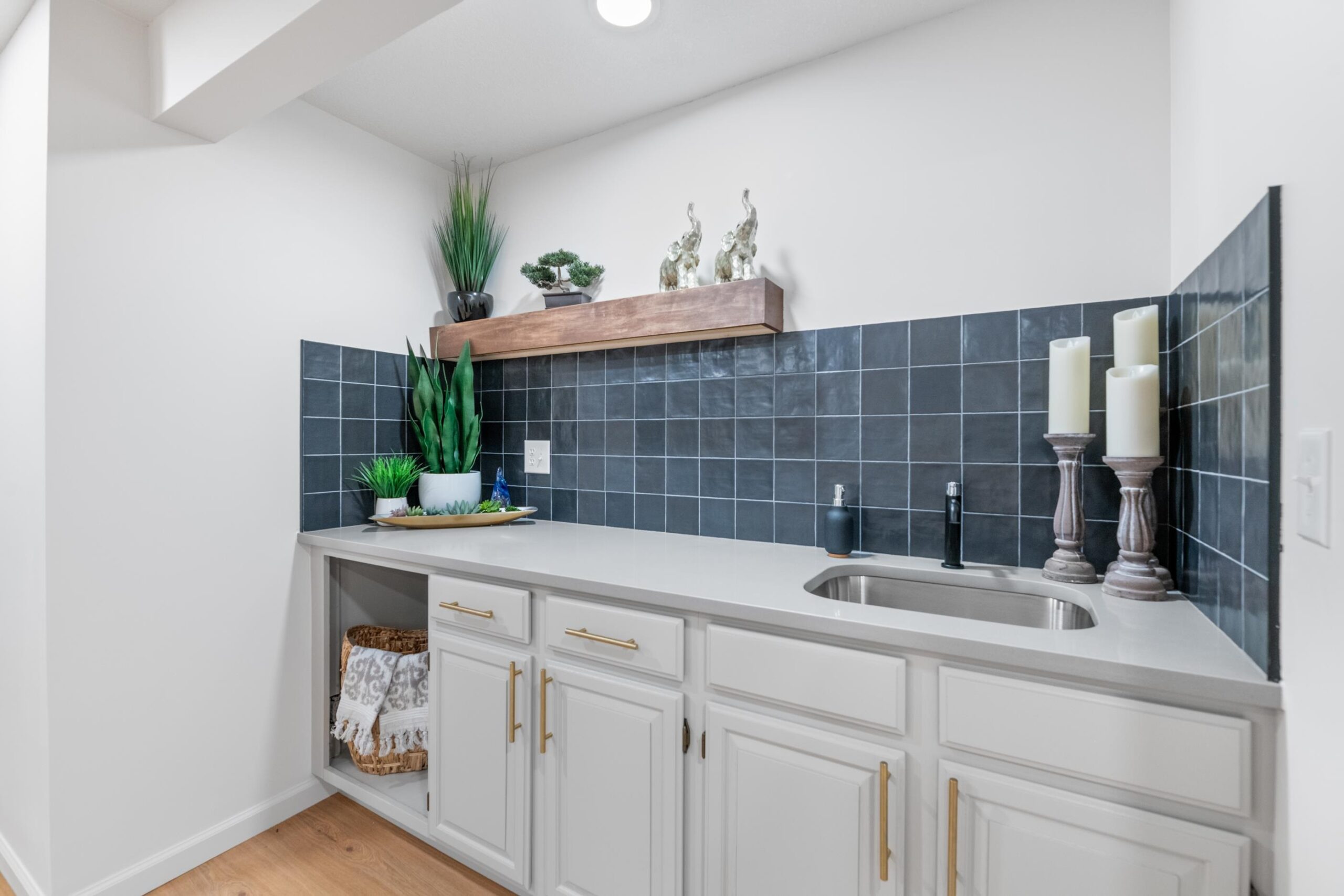 Check out this stunning and fully updated home in a prime West Wichita location! This beautifully modern property offers 4 full bedrooms and 3 full bathrooms, plus an additional non-conforming bedroom in the basement, perfect for guests, a home office or workout space. The modern kitchen is thoughtfully designed with a built-in coffee bar featuring a mini fridge, an oversized pantry, floating mantle and stylish finishes perfect for entertaining and everyday living. The basement adds even more value with a wet bar, while the bathrooms showcase beautiful custom tile showers throughout. Step into the master bathroom featuring double vanities and beautiful finishes. Enjoy the warmth and ambiance of an electric fireplace, complemented by stunning stained woods to add that architectural appeal. Check out the large, fully finished garage, fully fenced backyard, and updated lighting throughout complete the package. The large back patio is a perfect spot for entertainment or to let your dogs run and play with the fully fenced in yard. This move-in-ready home blends modern design, functionality, and location—an absolute must-see.